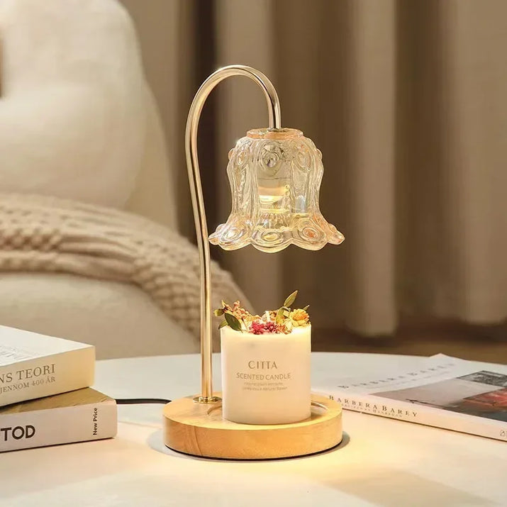 Elevate your home with this elegant candle warmer lamp, featuring a glass flower design that melts candles safely while releasing delightful aromas, transforming your space into a serene sanctuary.